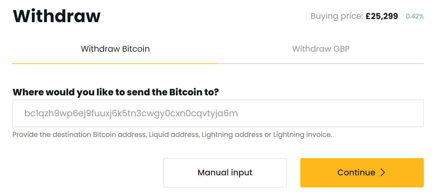 In your wallet you will find an option called ‘Receive’ which will generate a Bitcoin address, this is the address you enter into your exchanges withdrawal request by copying and pasting it, whilst checking that the address is the same on your mobile wallet as the one you have just copy and pasted into the exchange.