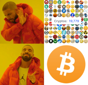 As mentioned the most prominent sales pitch will be that the coin is better money than Bitcoin, and altcoin marketeers have a plethora of reasons to convince you; it’s quicker to send, transaction fees are lower, it doesn’t pollute the environment, it’s more private, the coins were more equally distributed, it’s a stable coin, it was created by academics, the banks use it, the community (bag holders) are the best, Bitcoin’s old tech, or the best one: it has a cute dog as its logo.