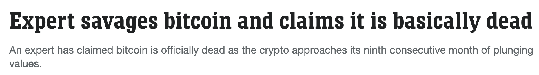 If you could sum up the ‘Bitcoins is dead’ narrative in one chart, it would be this: