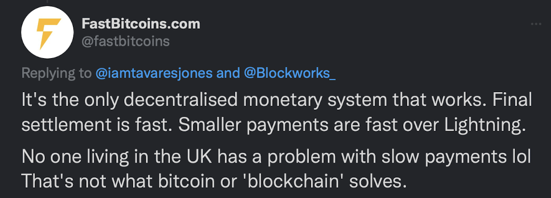 Bitcoin wasn’t created because payments need to be faster.