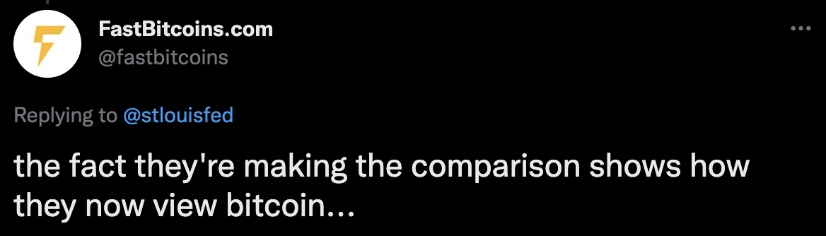 They think they’re just dunking, but it shows that they see Bitcoin as a real threat that they need to actively discredit. It’s quite timely considering the current inflationary climate.