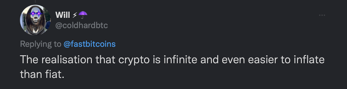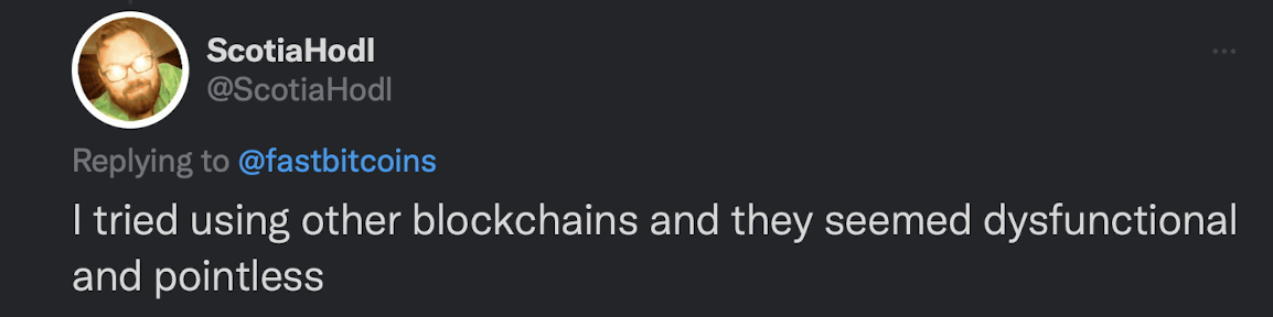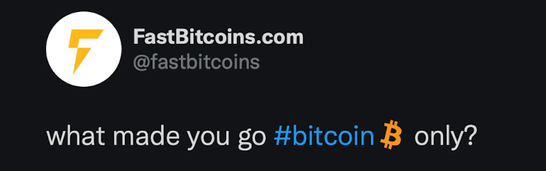 We’ve been proudly Bitcoin only from day one, but almost no one starts their journey this way. Everyone has their own reason for eventually focusing on Bitcoin exclusively, so we thought we’d share some reasons from Bitcoin Twitter…
