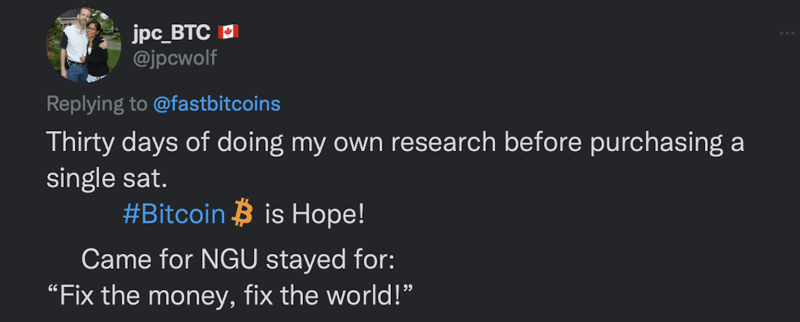 Most of us are drawn to Bitcoin by FOMO/greed but once we realise what it is we stay for a completely different reason. Bitcoin is money, but many aren’t in it to purely make money.